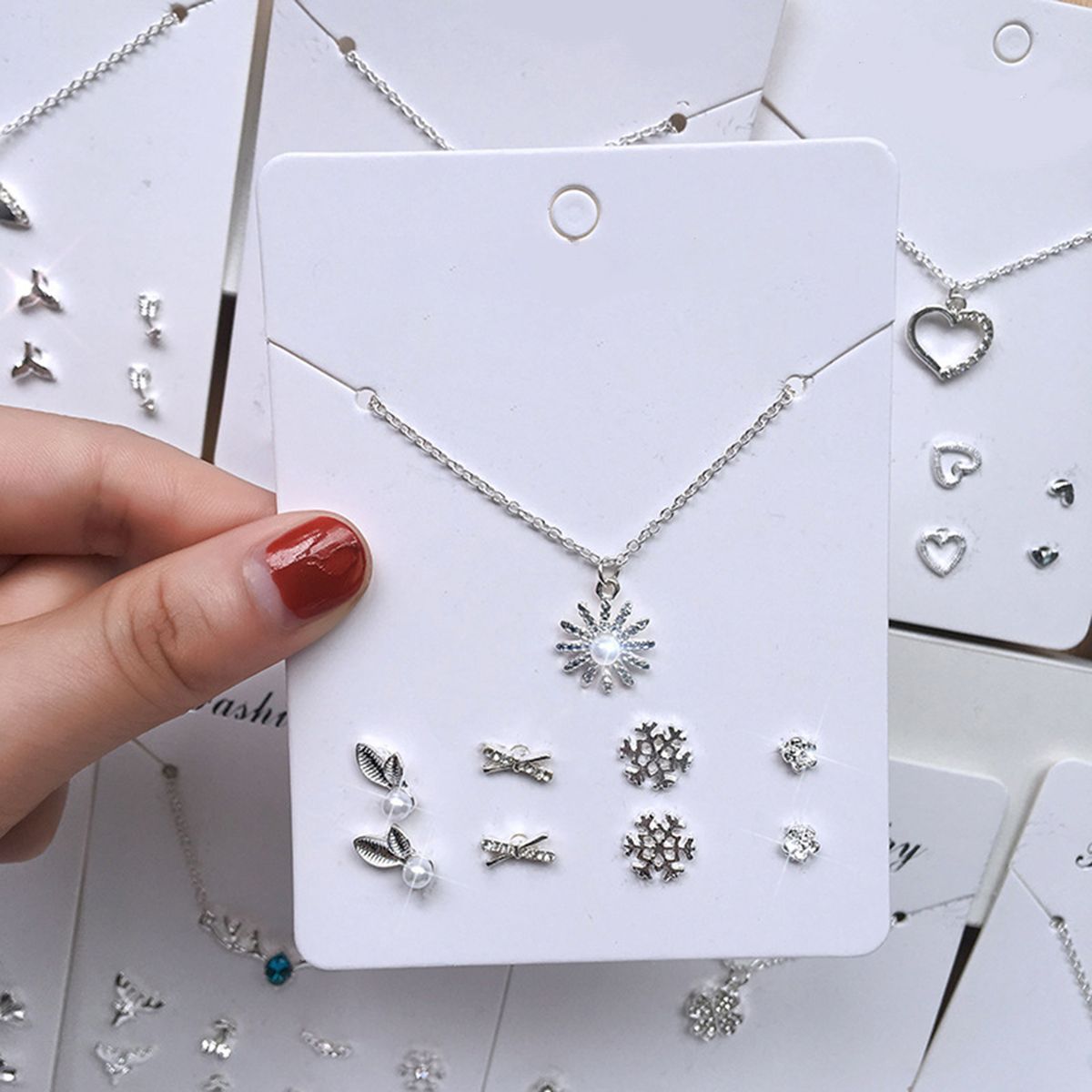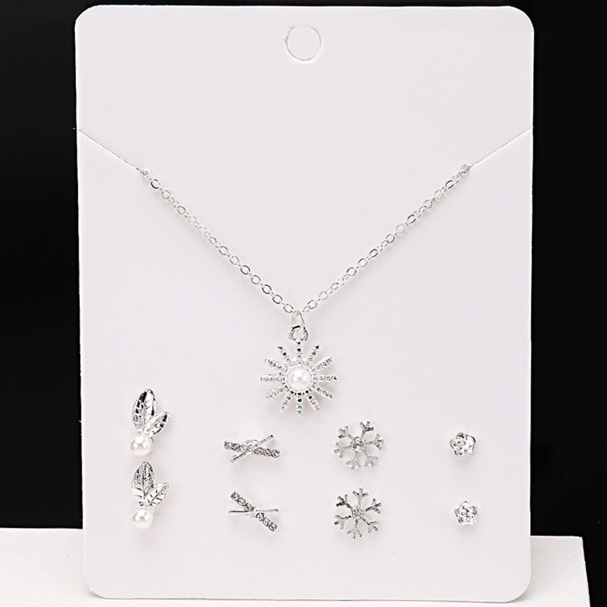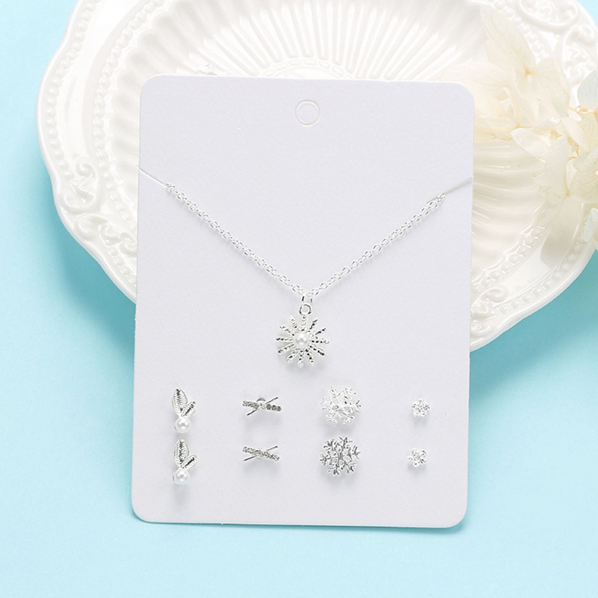 The stud set includes one necklace and four pairs of earrings. The necklace is beautiful and the ear studs is simple. Wear it, making you more charming.