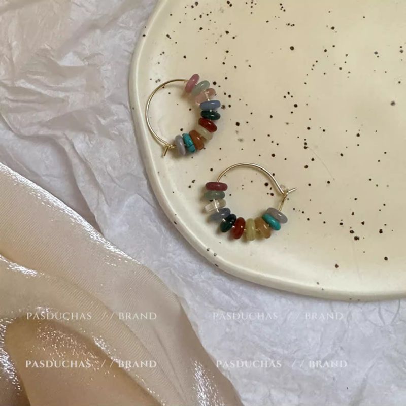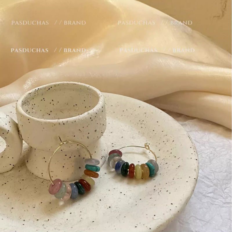 Earrings Women's Colorful Beaded Ear Buckle Ring High-grade Retro Sweet 925 Silver Stone Penetrating material