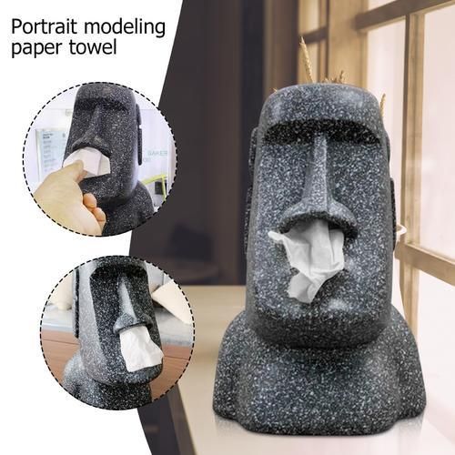Easter Island Stone Statue Paper Towel Box Household Bedroom Nostril Moai Paper Towel Pumping Paper Towel Holder Napkin Holder-Tissue Boxes