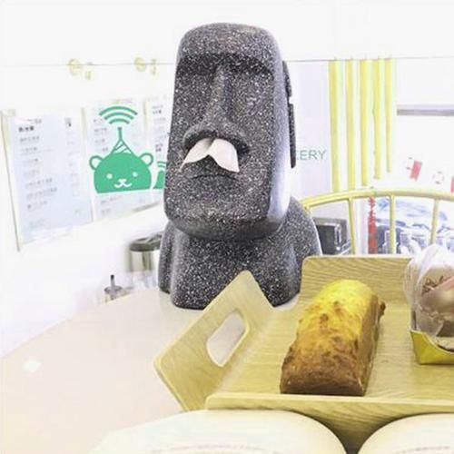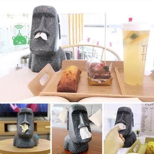 Innovative design-Moai design. Put the paper towel in and take it out from nose. It's fun. It can decorate your desktop.