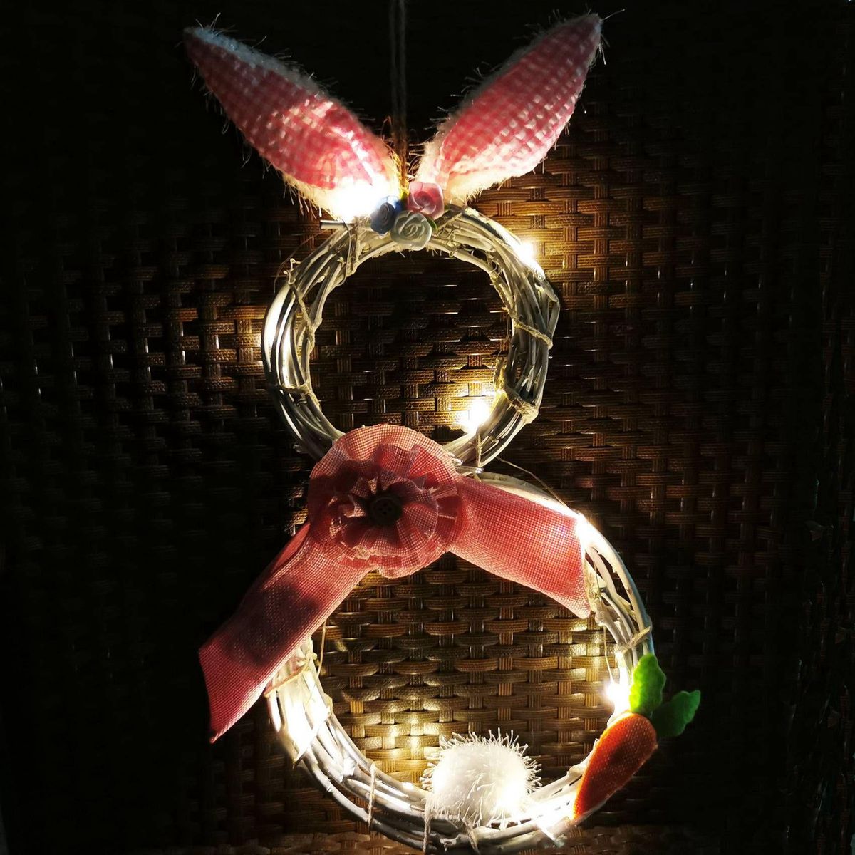 Exquisite handmade design: This Easter wreath is made of high-quality, and harmless polyester. With additional LED light string (without battery). Exquisite string lights can add a festive atmospheres to your party.