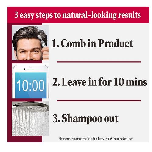 Using this no-mix men's hair coloring product is as easy as combing your hair. Simply attach the comb applicator to the pre-mixed color tube, comb into your hair to apply, wait ten minutes, and rinse your hair out in the shower.