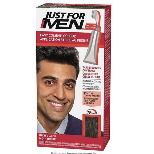 For guys who want a foolproof way to get rid of gray hair color for natural looking results, there's Just For Men Easy Comb-In Color. This easy comb-in, no mix, no mess formula only takes ten minutes to color every single gray hair, and lasts until the gray hair grows back. Just For Men Easy Comb-In Color comes in many natural looking shades, so it's easy to find the one that truly matches your natural hair color. Can't decide between two shades? Try the lighter one first. You can always go darker later.