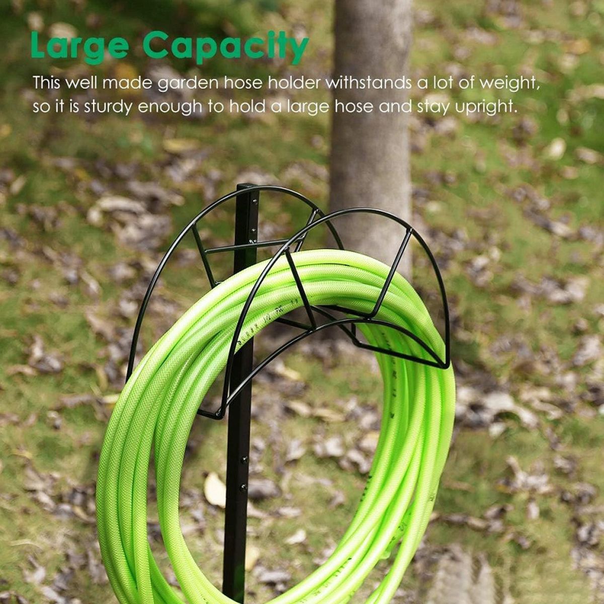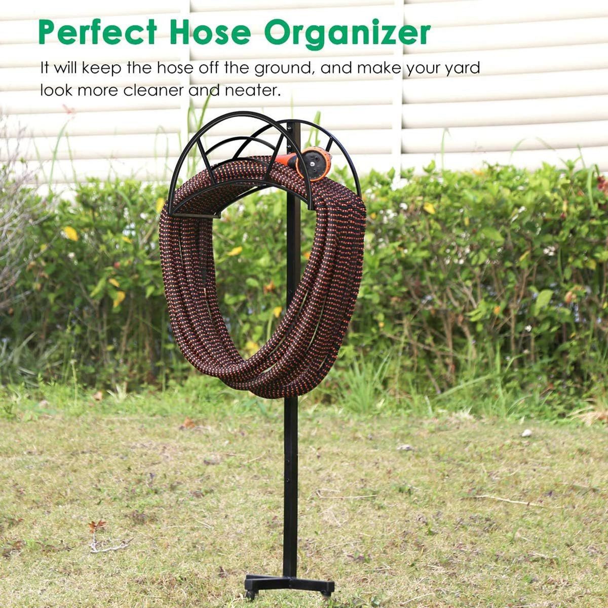 Say goodbye to tangled hoses and knots with our garden hose freestanding holder. it keeps your hose in good condition without any distortion or knotting, allowing you to use it immediately whenever needed. additionally, the hose hanger's space-saving design perfectly holds the hose, preventing it from twisting and tangling.
