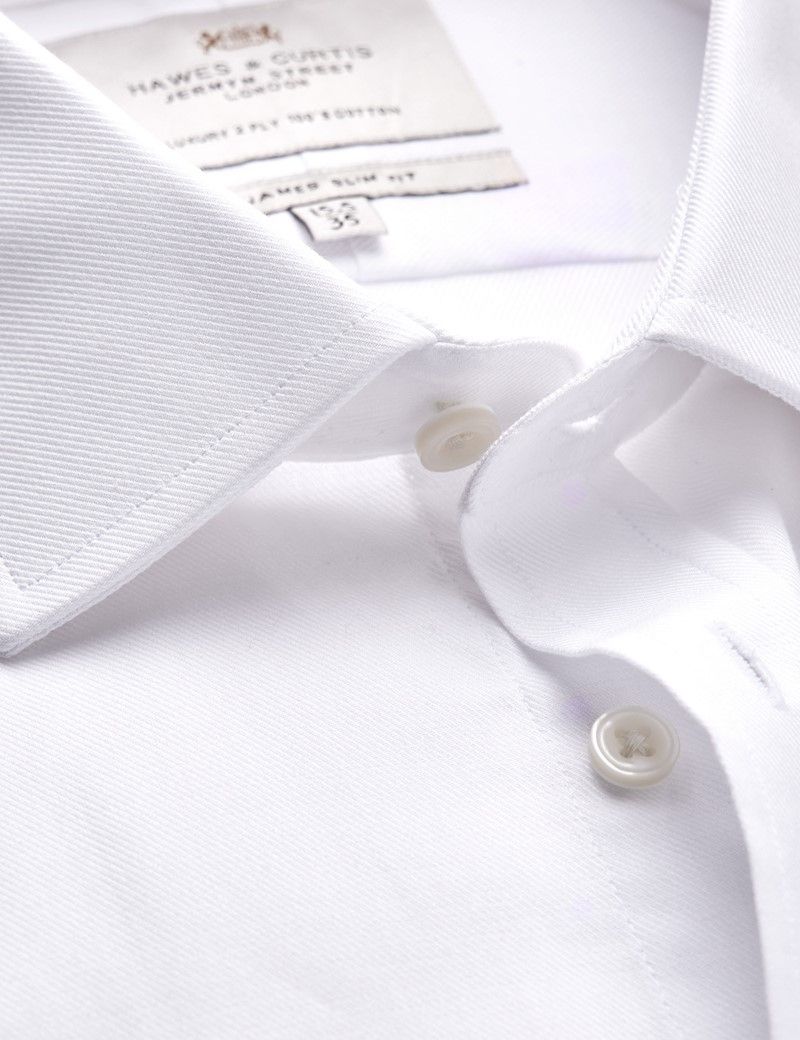 white twill slim fit formal shirt is ideal for gentlemen who require a sharp, tailored look. Beautifully cut with back darts, this contemporary style is the perfect choice for both the office and casual engagements. Made from the finest 2 ply 100s cotton, this shirt has been perfected with Hawes & Curtis' new luxurious silk touch finish. The result is a smooth, lavish texture that makes it feel even more opulent and exceptionally comfortable to wear.