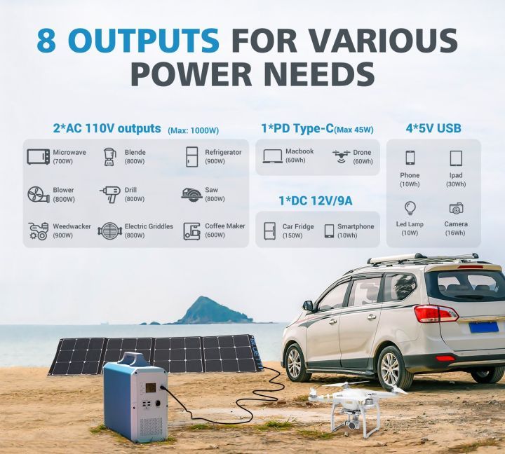 A: Please note that the AC output ports can only charge/power devices that operate at less than 1000-Watts, besides, the whole wattage should be under 1000 watts as well. Once exceeding, Bluetti EB240 will shut off automatically. Please refer to your device specification before purchase.