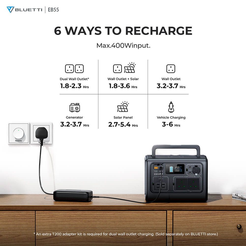 6 Ways to Recharge (AC/Solar/Car/Generator/AC+Solar/Dual AC)