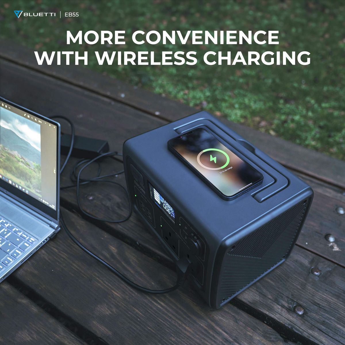 You can connect all your basic needs to EB55 as long as the total output voltage doesn't exceed 700W. The wireless charging pad is compatible with most of the phone models, don't worry about getting lost when you forget your charging cable at home.
