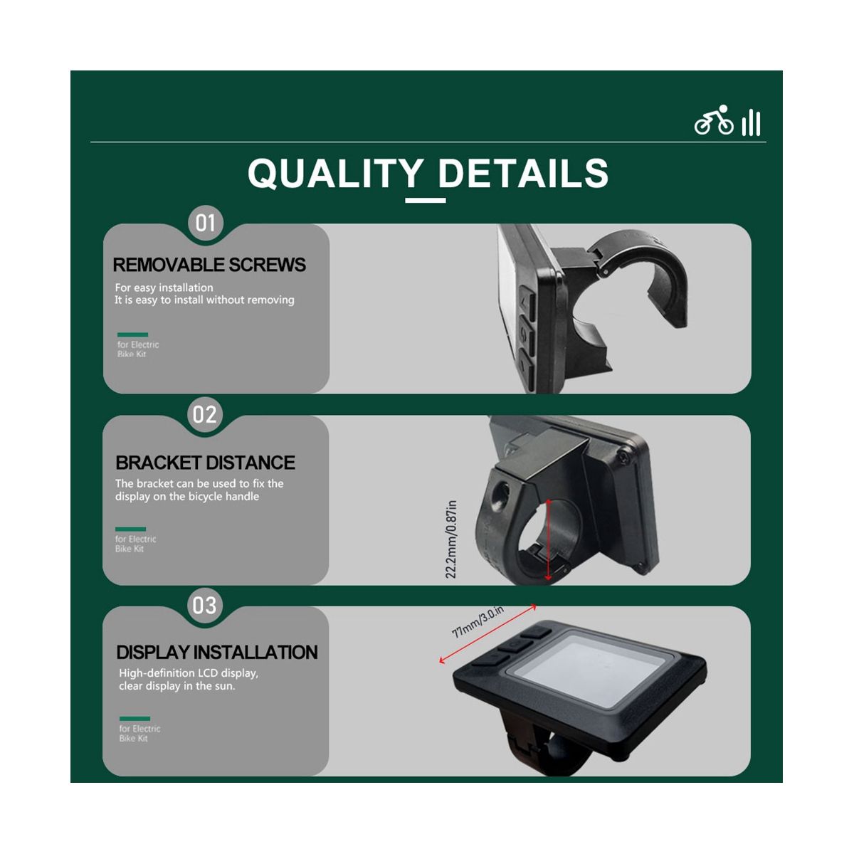 This electric bike LCD screen is made of high-quality motherboard and high-quality plastic, small size, beautiful, waterproof, wear-resistant, durable and long service life.