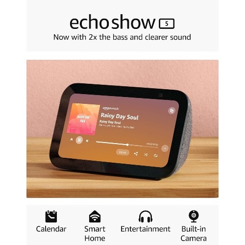 Echo Show 5 - 3rd Gen- 2023 Release- Smart Display With 2x The Bass - Charcoal
