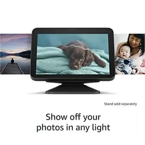With an 8" touchscreen HD display and a 13MP camera, the charcoal 2nd generation Amzon Echo Show 8 uses video capabilities to expand on traditional Alex functionality. Equipped with dual-band Wi-Fi and four microphones, the Echo Show 8 connects to your home's wireless network and allows you to intuitively play music, video chat with friends, check the weather and traffic reports, hear sports scores, watch videos, and more.