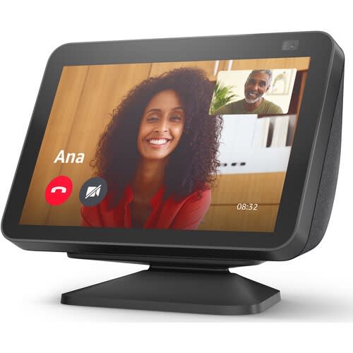 With an 8" touchscreen HD display and a 13MP camera, the charcoal 2nd generation Amazon Echo Show 8 uses video capabilities to expand on traditional Alexa functionality. Equipped with dual-band Wi-Fi and four microphones, the Echo Show 8 connects to your home's wireless network and allows you to intuitively play music, video chat with friends, check the weather and traffic reports, hear sports scores, watch videos, and more.