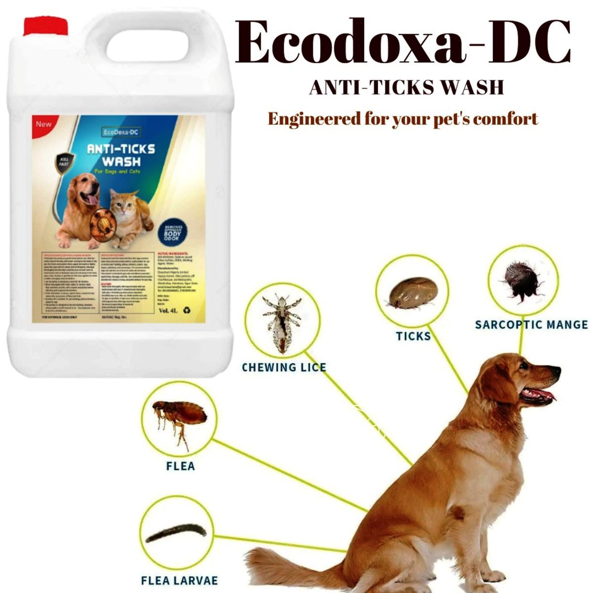 Ecodoxa-DC Anti-Ticks Bath Wash is a liquid bath shampoo for the control of dogs and cats ticks, flea, flea larvae, flea eggs. The product effective and suitable for use on various pets (dog & cats) bedding, pillow, blankets, carpets, rugs, drapes, upholstery, and counter tops the product is designed to be non-staining, however always apply small amount to an inconspicuous area to test for colorfastness. Ecodoxa-DC Anti-Ticks Wash is recommended for dogs and cats at least 12 weeks old and above. The product is intended to give safe and efficient protection against fleas, ticks, flea eggs and larvae; our combined blend of innovation creates a strong, yet gentle defense for your pets (dogs & cats). The usage is for external application only. Also avoid contact with sensitive areas: such as eyes, mouth etc.
