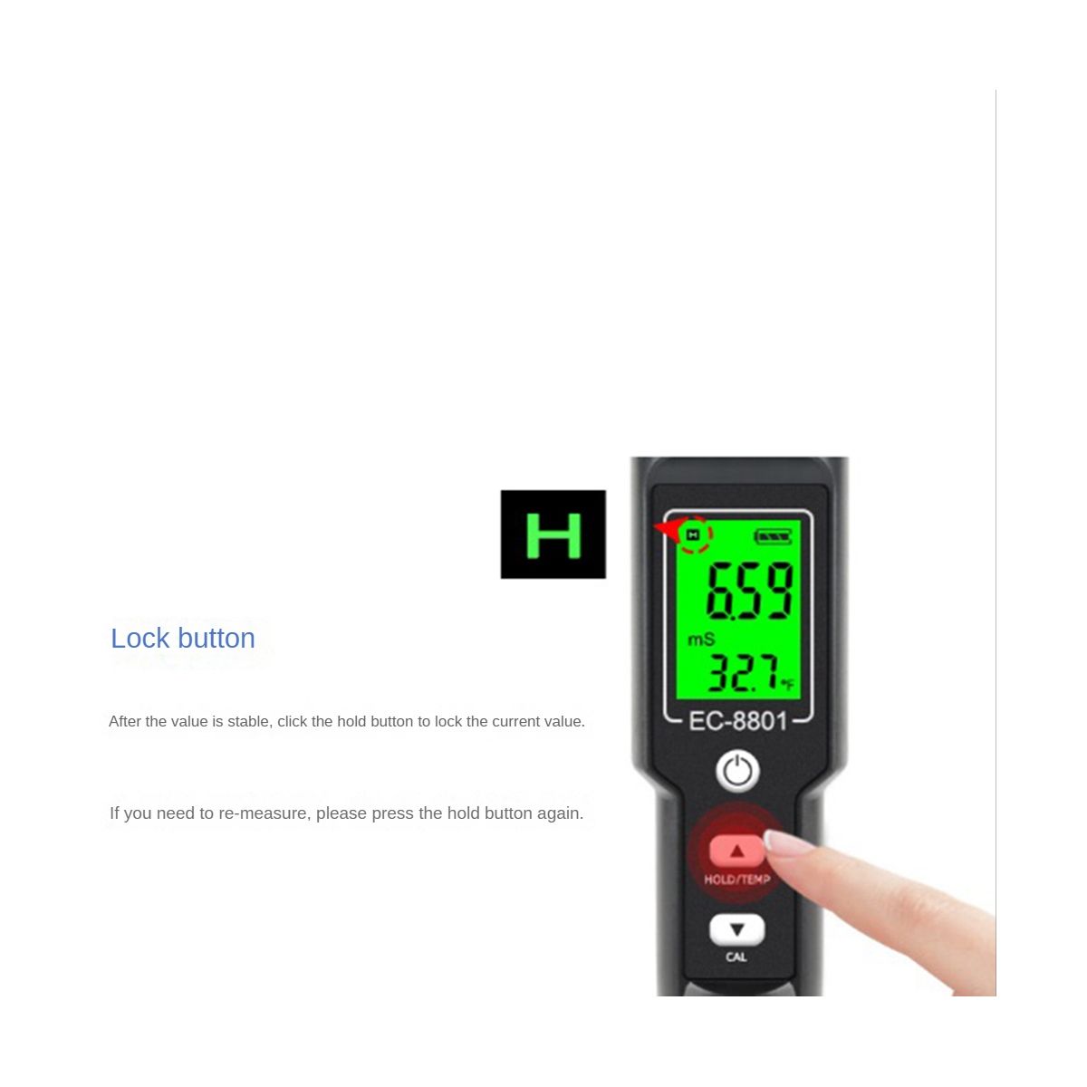 4 Lock on After the value is stable click the hold on to lock the current value If you need to re-measure please press the hold on again