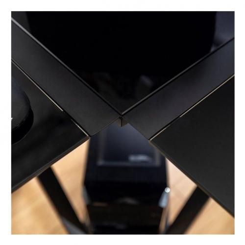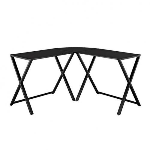 With x-frame designed legs, this versatile desk gives a modern feel to your home. Having an angled design made of sturdy, steel metal with a powder coated finish with a tempered glass top, this contemporary desk can fit in just about any corner space, from your home office to your living room. Decorate with vases and framed family pictures, while using it to write on or to work on your computer.Polished and levelled, tempered safety glass Durable steel frame with powder-coat finish. Ships ready-to-assemble with step-by-step instructions.2 side surfaces support each and corner top surface supports up to 20 Ibs.Join 2 desks to accommodate multiple monitors and create an optimal gaming spaceDesk top made with tempered safety glassShips ready-to-assemble with step-by-step instructions.Brand Walker EditionWith x-frame designed legs, this versatile l-shaped desk gives a modern feel to your home. Having an angled design made of sturdy, steel metal with a powder coated finish with a tempered glass top, this contemporary desk can fit in just about any corner space, from your home office to your living room. Decorate with vases and framed family pictures, while using it to write on or to work on your computer.Polished and bevelled, tempered safety glass Durable steel frame with powder-coat finisH. Ships ready-to-assemble with step-by-step instructions.2 side surfaces support up to 50 Ibs. each and corner top surface supports up to 20 Ibs.
