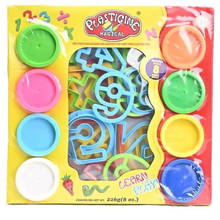 Plasticine magical numbers & shapes intelligent play dough 23 pcs clay moulds for kids with 8 cans pots learn and play with our magical plasticine dough pack. With rollers and number cutters, your children can have fun and build their creativity with our play-inspired dough set. This play dough pack comes with 0 to 9 numbers, 5 basic mathematics symbols, 6 different shapes, a roller, cutters and 8 cans of play dough.