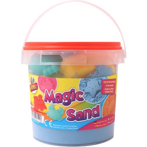 Magic sand in carry bucket complete with molds and formers random colours will be sent. Great fun for all children above 36 months.