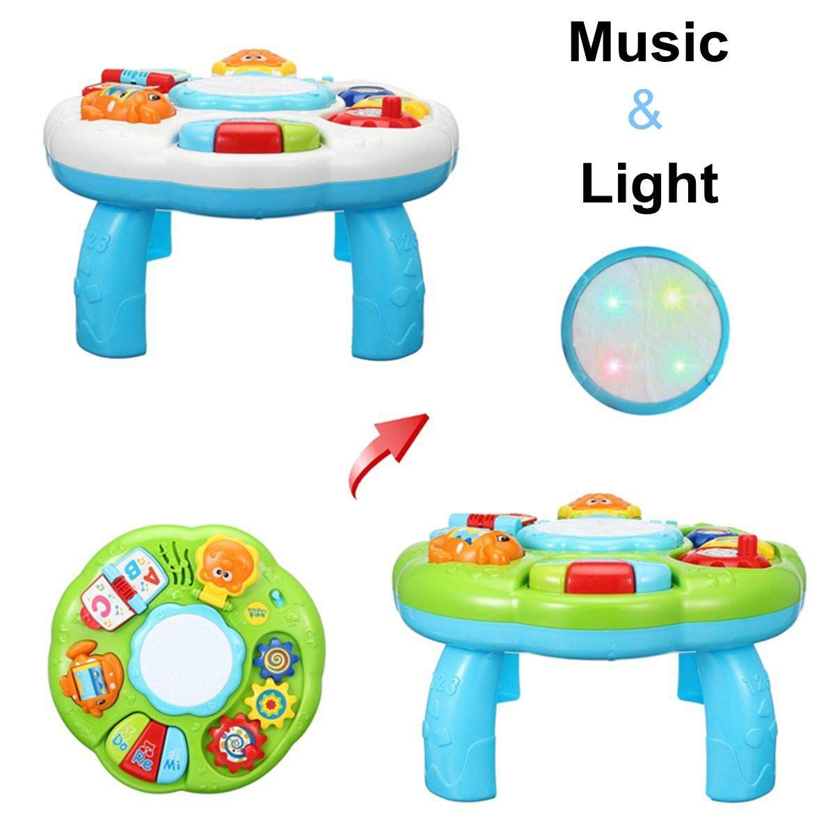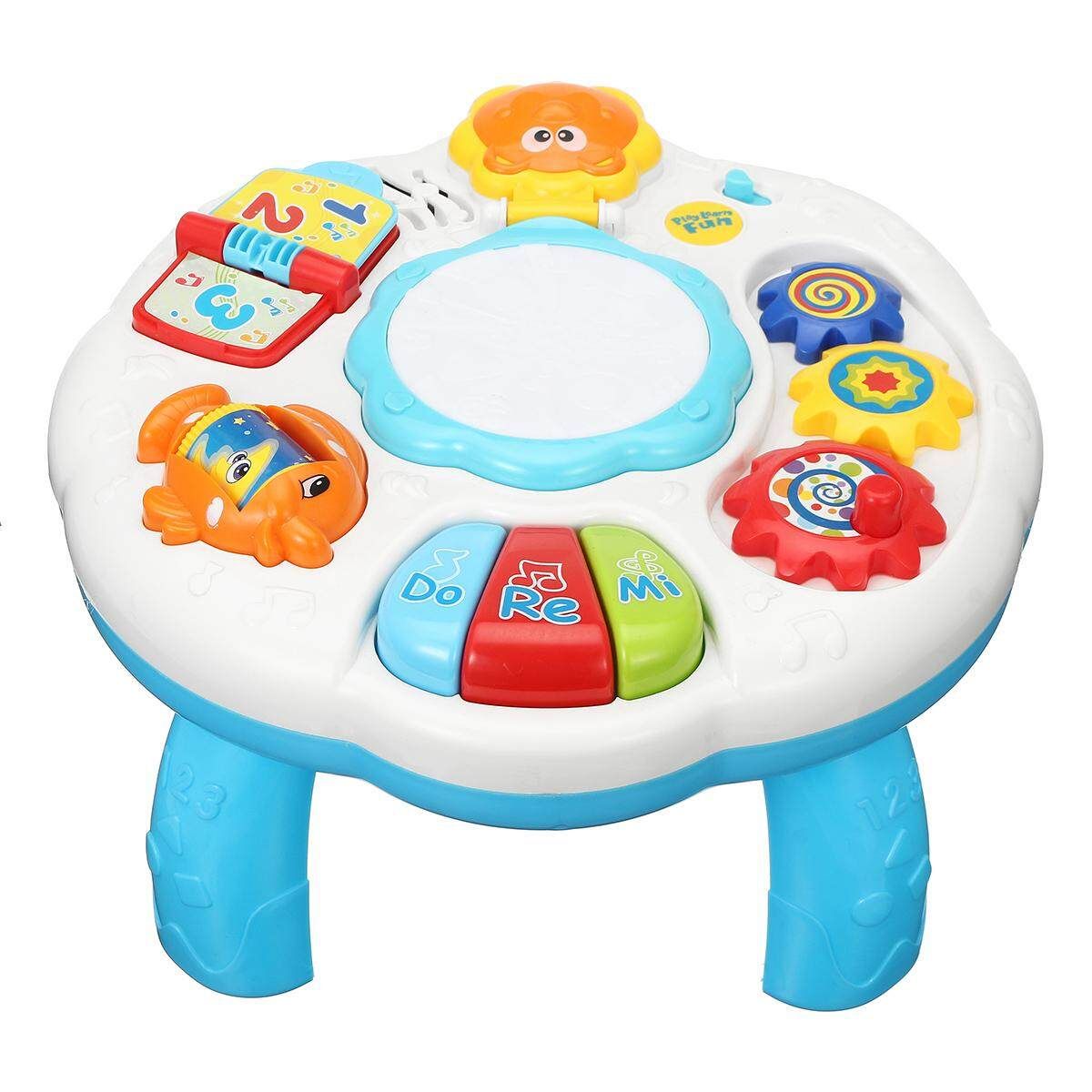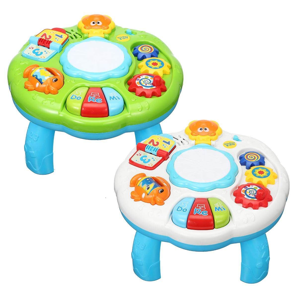 ? Baby can tap the drum in the middle of the table to feel the lively rhythm and sound effect.