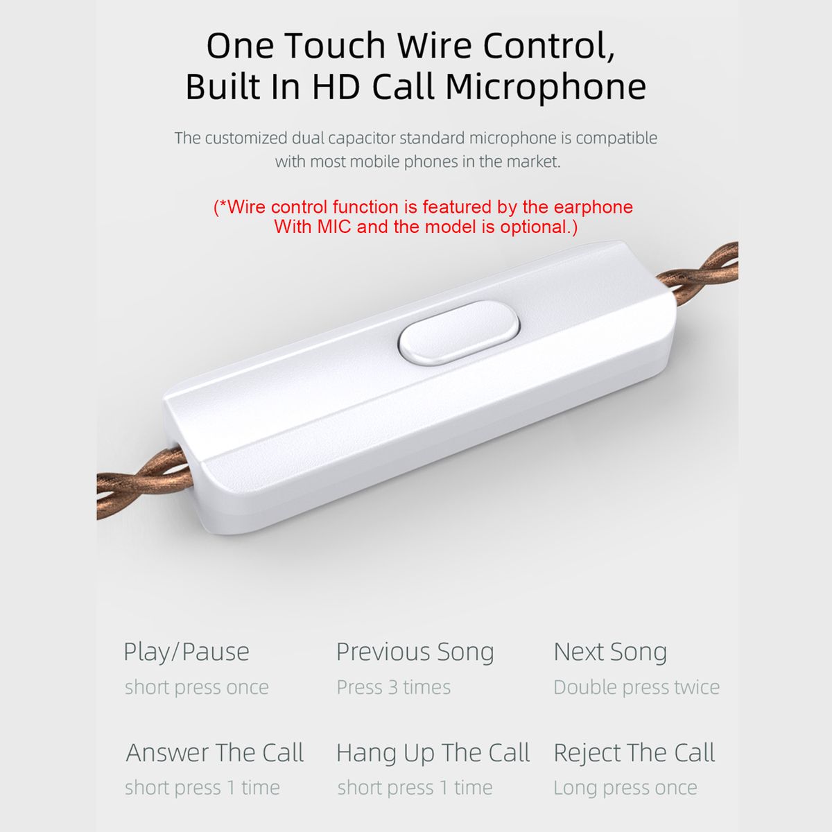 (Optional)Wire Control: No Mic / With Mic