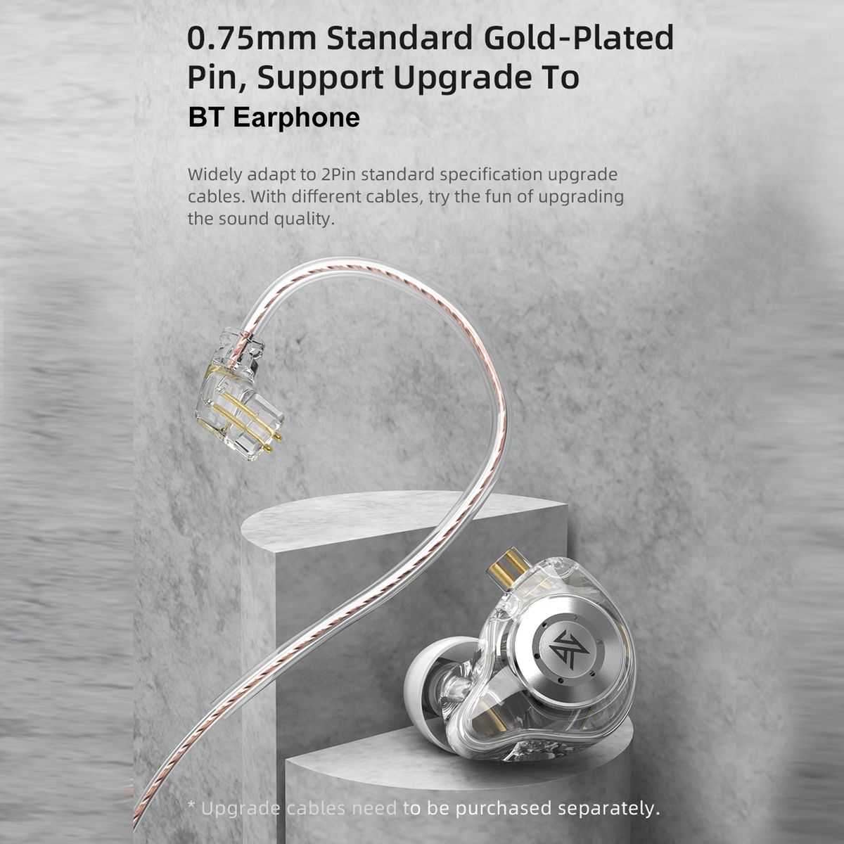 With 0.75mm standard gold-plated pin, EDX Pro can be upgraded to become BT earbuds by replacing the cable, simple and fast.