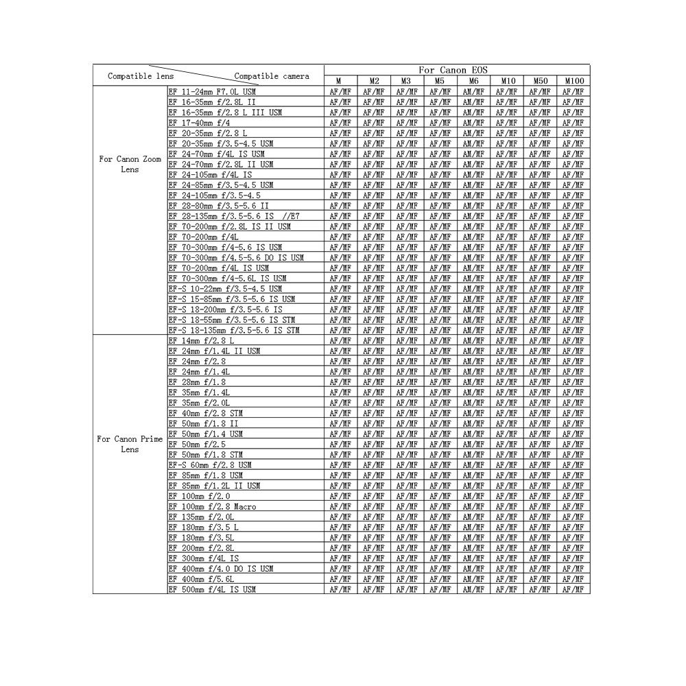 Specifications:Compatible Lenses: for EF series lenses