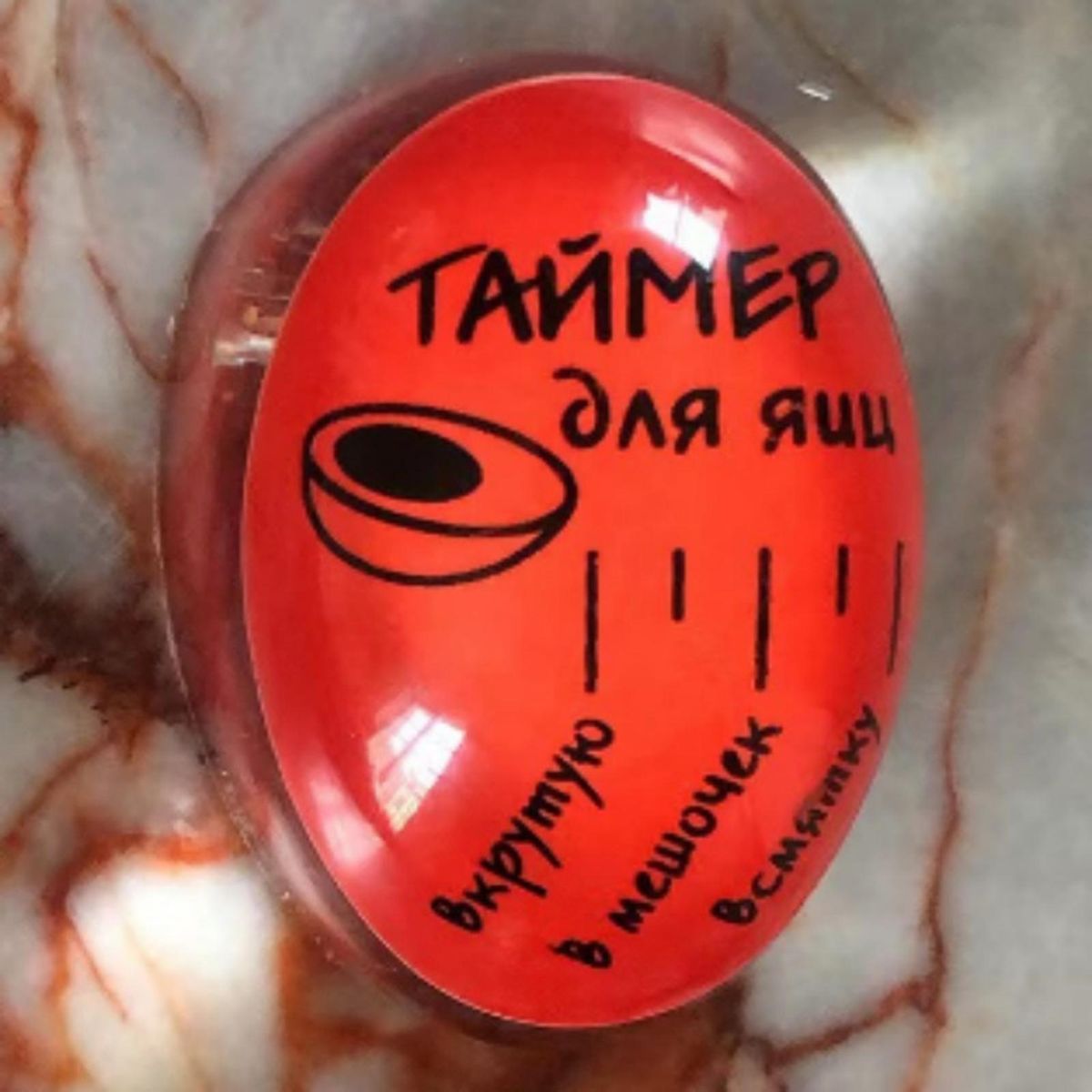 As the eggheats up, the red face changes color, indicating soft, medium, hard and stages in between, absorbing heat exactly as an egg does.