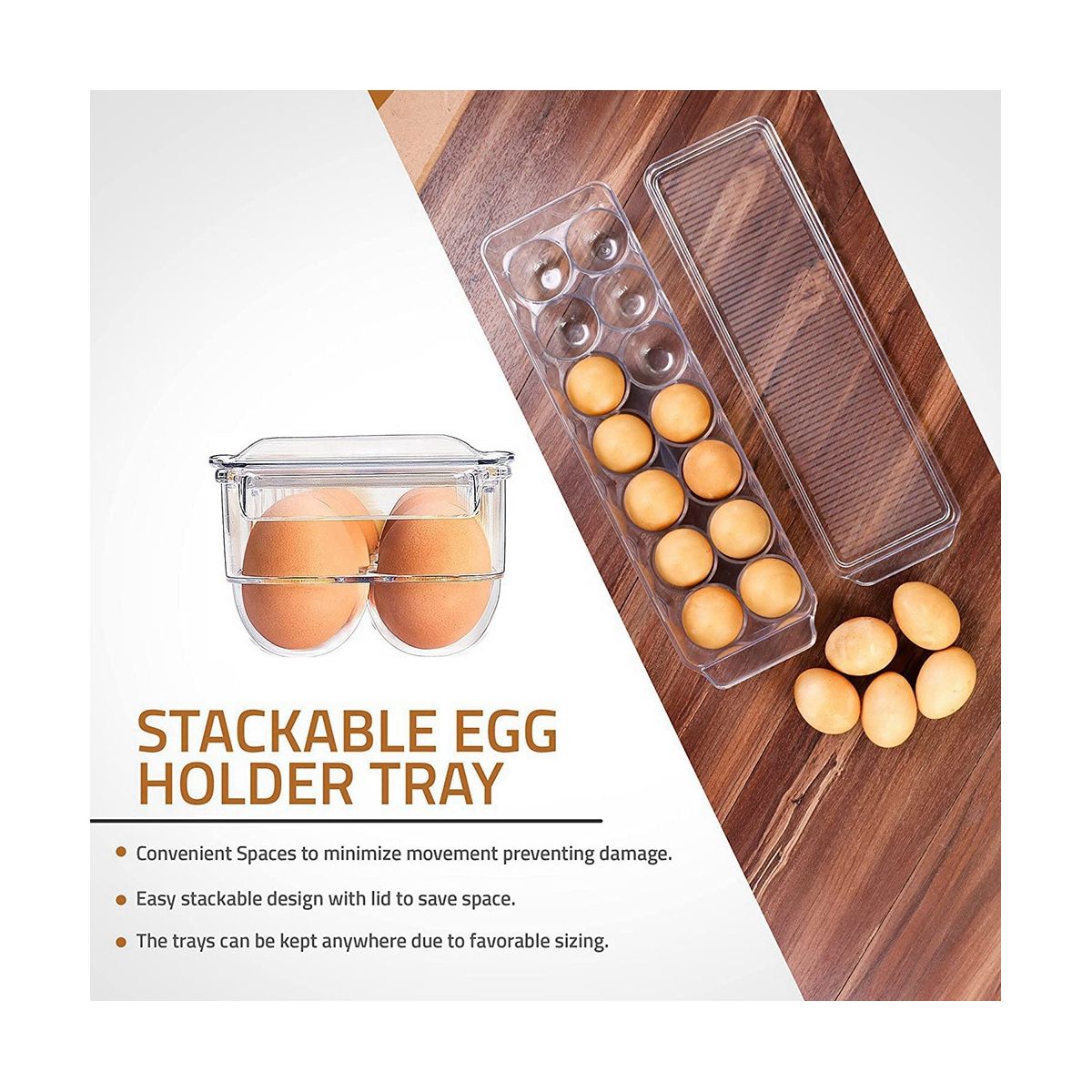COVERED AND STACKABLE - Accommodating a cover the trays come with an stackable design that allows you to stack over or under any other item with having no fear of breaking or severing your eggs