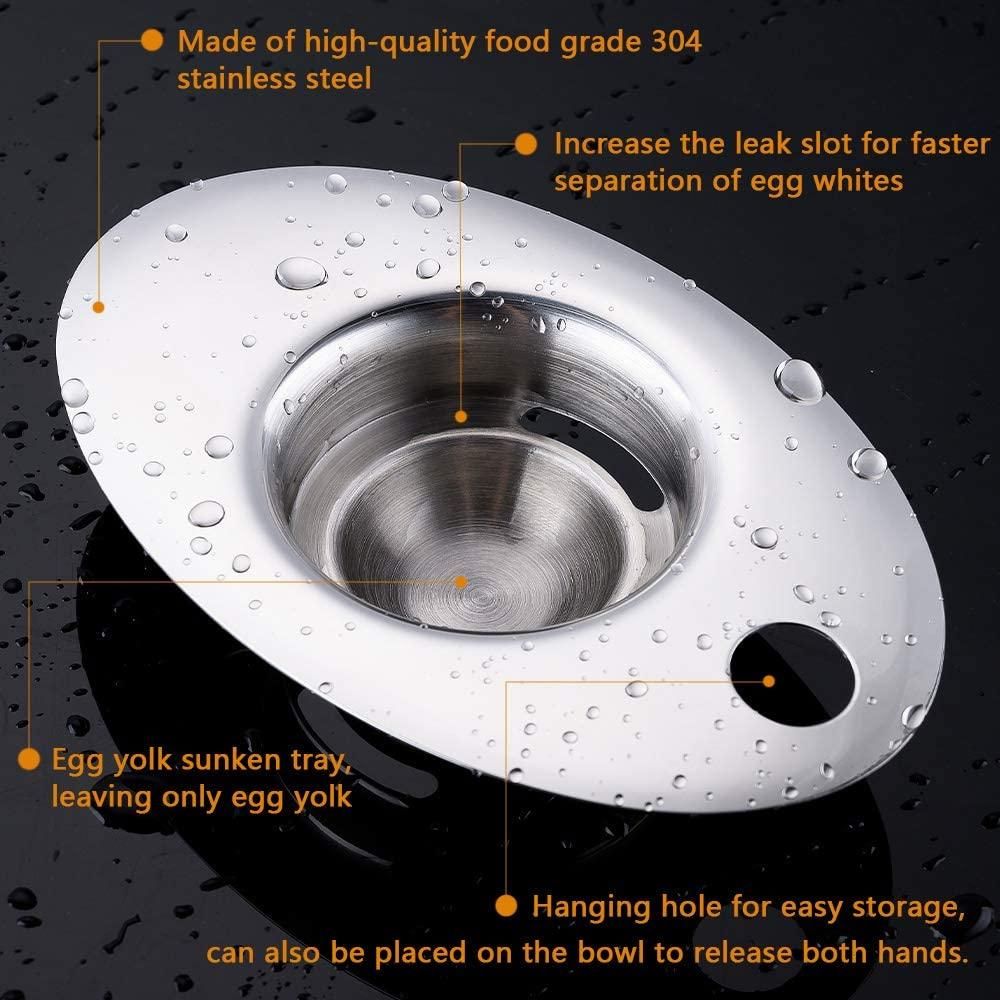 [304 Food grade stainless steel]:Egg Separator and Whisk using high-quality stainless steel material, ingeniously built, skilled in craftsmanship, durable, and not rusty,Very long life.