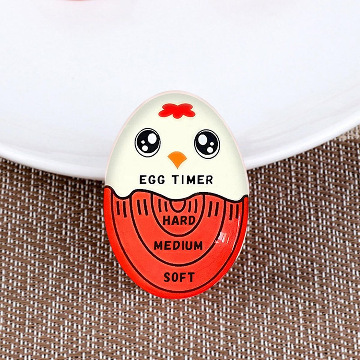 As the eggheats up, the red face changes color, indicating soft, medium, hard and stages in between, absorbing heat exactly as an egg does.