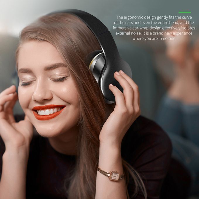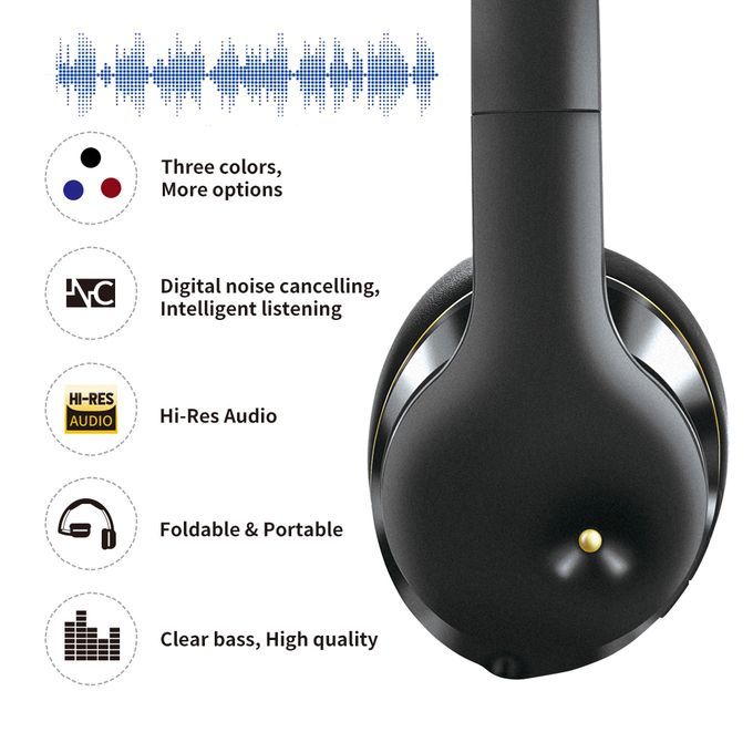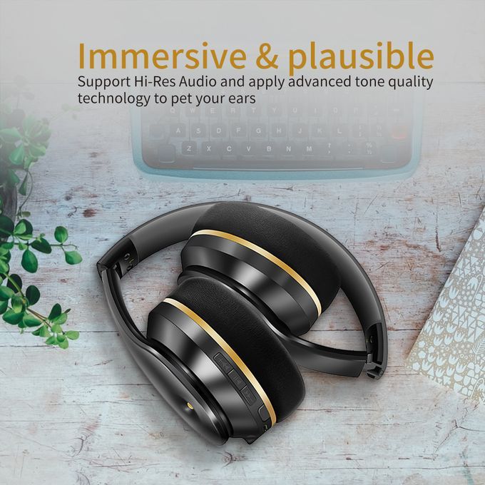 EL528 Wireless BT Headphone Foldable Stereo ANC Headset Sports Gaming TF/FM/Wired Mode Earphone for Phone/Laptop/PC Black&Gold