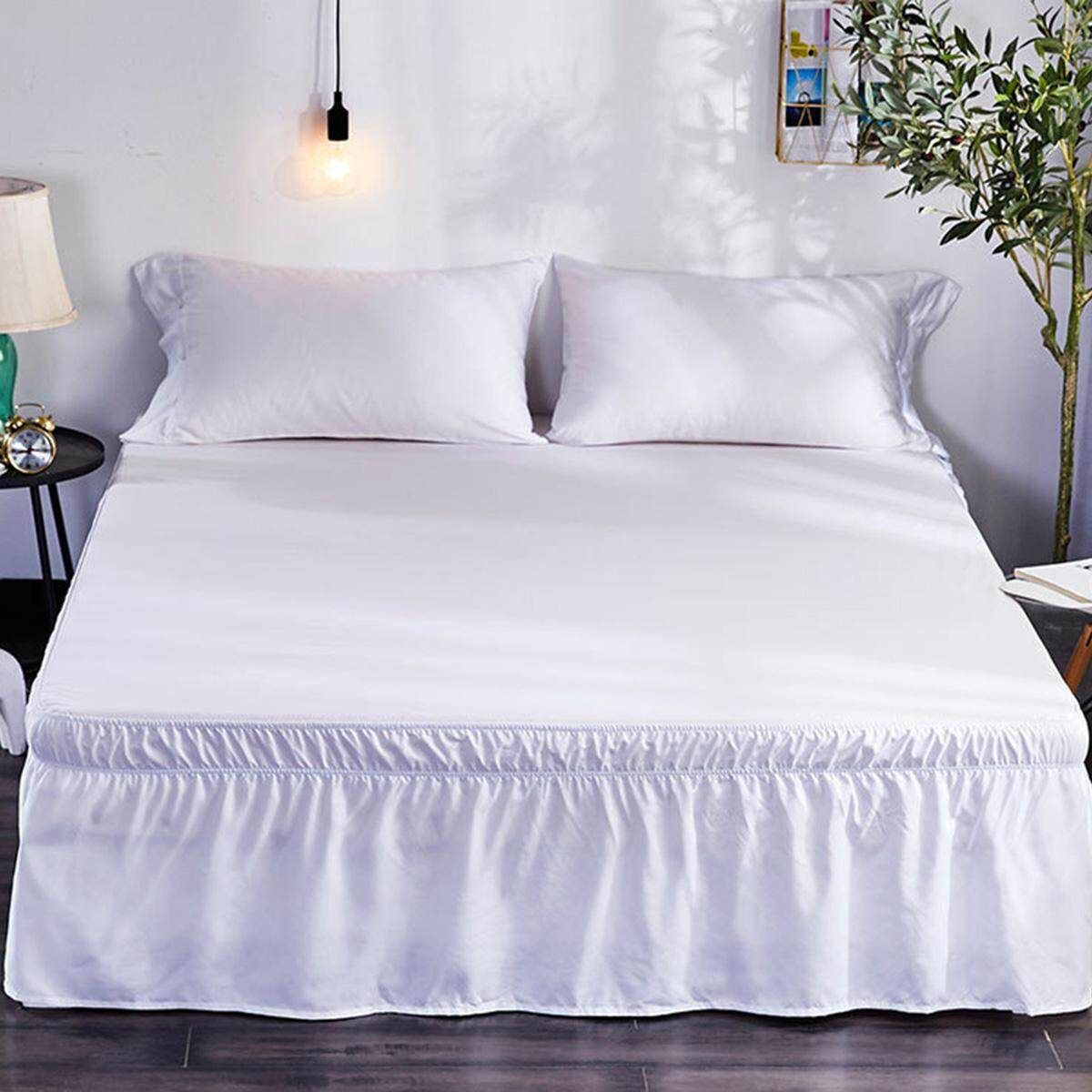 Elastic Band Wrap Around Bed Skirt Dust Ruffle Bedskirt Twin / Full / Queen / King Size Bedding Skirt