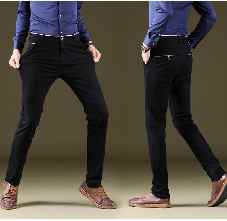 Pantalones elasticos de algodon para hombre calzas clasicas ajustadas en color negro azul y gris ropa de negocios de marca novedad de 2020