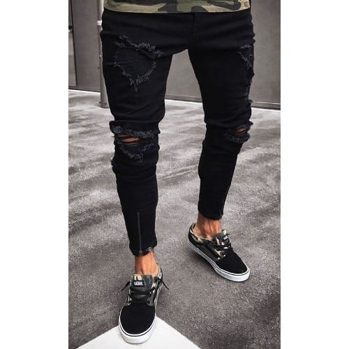 Buy Elastic Knee Ripped Street Jeans For Men in Nigeria