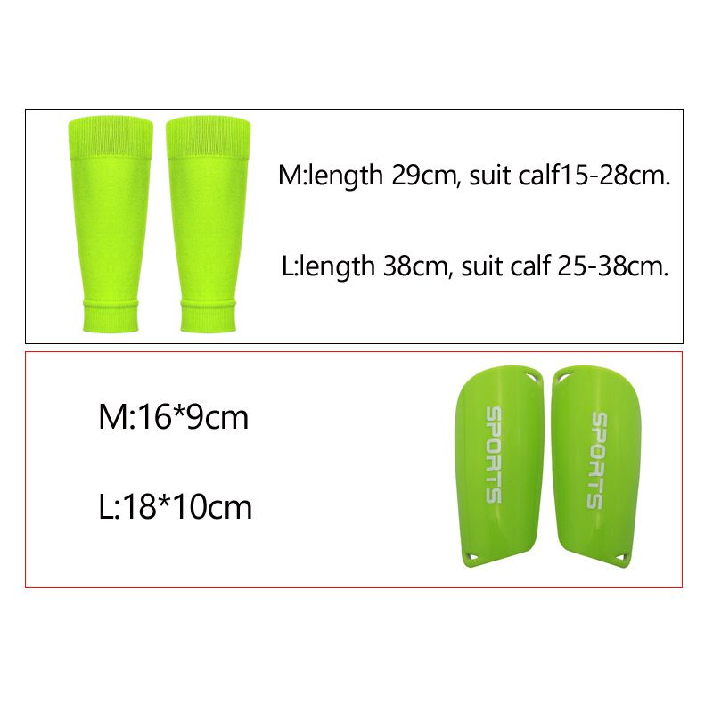 Leg Sleeves size : M Size: length is about 29cm, suit for calf circumference 15-28cm, L Size:length is about 38cm, suit for calf circumference 25-38cm. Shinpads size : M size :9cmX16cmX0.5cm L size :10cmX18cmX0.5cm
