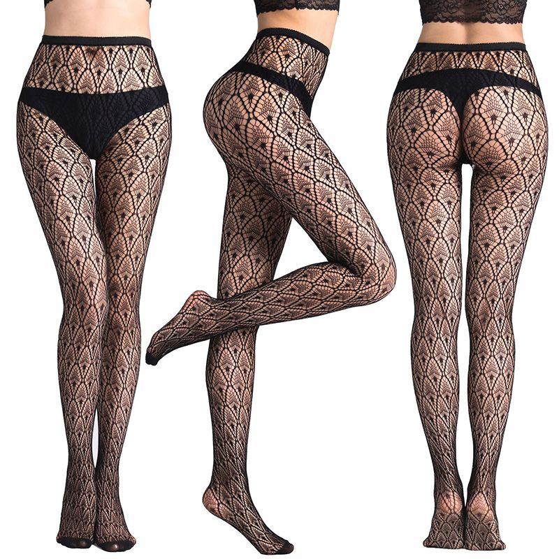 Women Lace High Stockings Silk Thin Open Crotch hose Hollow Out Tights Over Knee