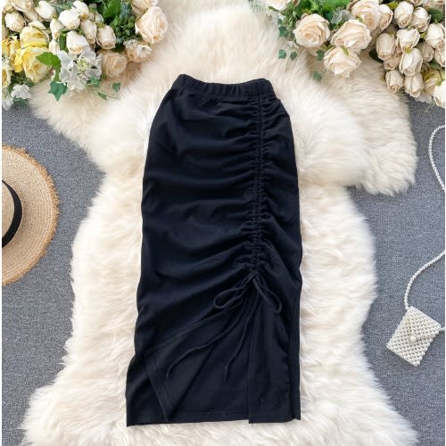 Buy Elastic Waist Drawstring Split Pencil Skirt - Black in Nigeria