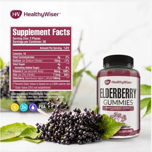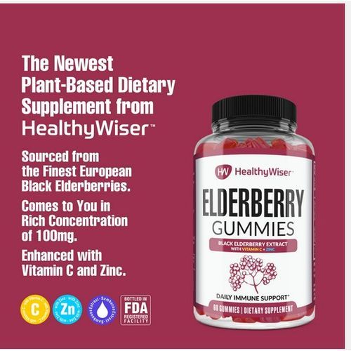 - Enhanced with Vitamin C & Zinc for a Complete Formula & Stronger Action: HealthyWiser's Elderberry Gummies provide you with the most important antioxidants with every intake. This product is not only packed with elderberries goodness, it is also enhanced with Vitamin C + Zinc, which are known to support the work of each other, and always recommended together by specialists. So why take 3 vitamin pills when you can have it all in every HealthyWiser Elderberry gummy?