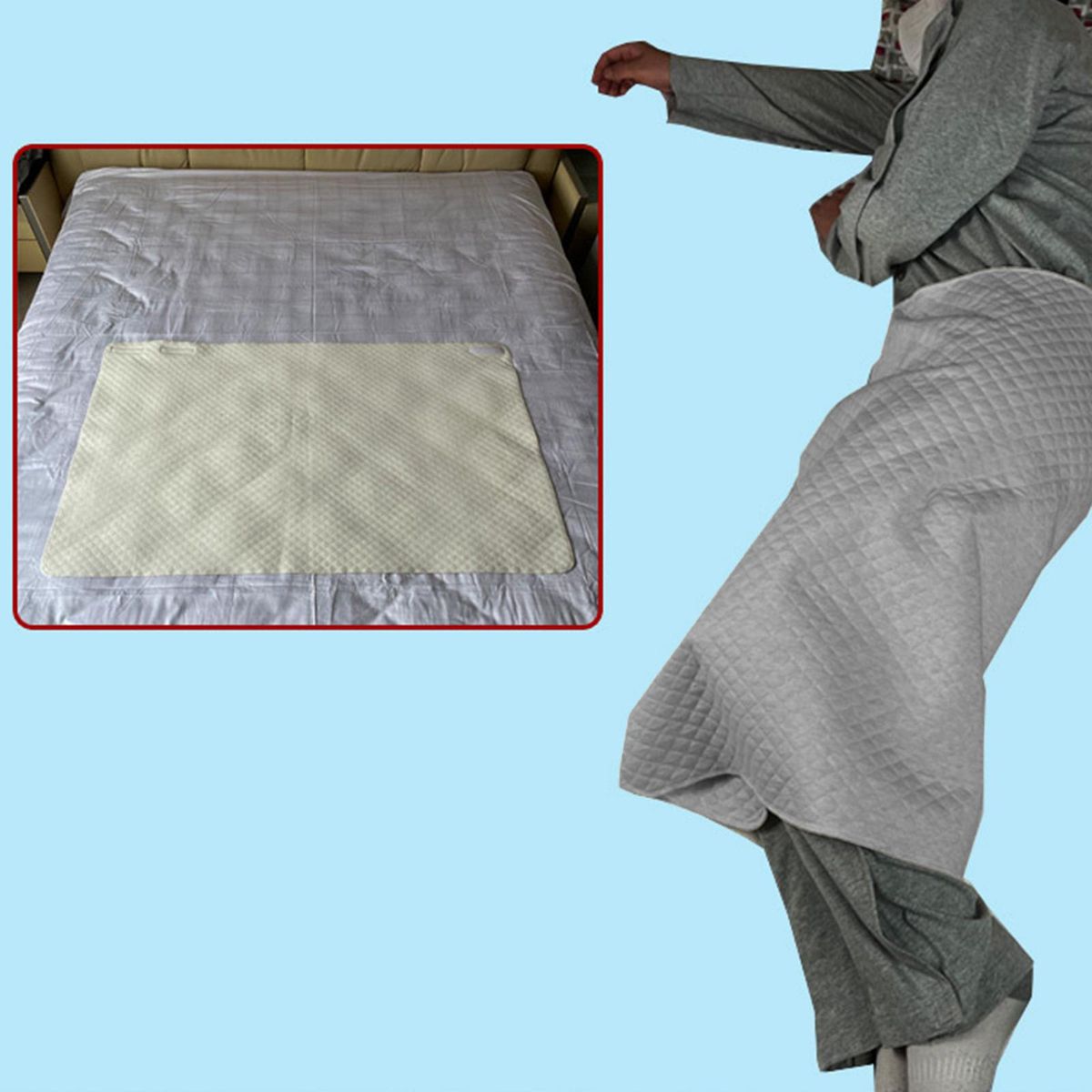 Incontinence pad: 3 layer design, made of cotton TPU film, diamond-shaped quilted jacquard process, flat surface, not easy to deform after repeated washing.With rectangular : You can wrap it around your waist, cover it with other clothing, and go to bed, or sit on the couch without worrying about leaks.Appropriate size: 120x70cm in size, with reasonable design according to body proportions, suitable for most situations. Open it during the day and use it as a diaper pad, one pad is multi-purpose.Protect Dignity: This incontinence skirt is like a skirt and doesn't look like a diaper or anything. This is very important to her self-confidence.Easy To Clean: Reusable, can be washed repeatedly by hand or machine. At the same time, this incontinence mattress is also warm thanks to the cotton material.
