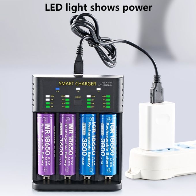 Ele Tri Battery Harger 1.2V 2A Indi Ator 4 Slots For 186 AA/AAA-black