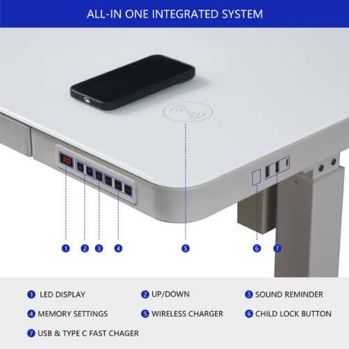 Buy Electric Adjustable Height Desk Glass Top White in Nigeria