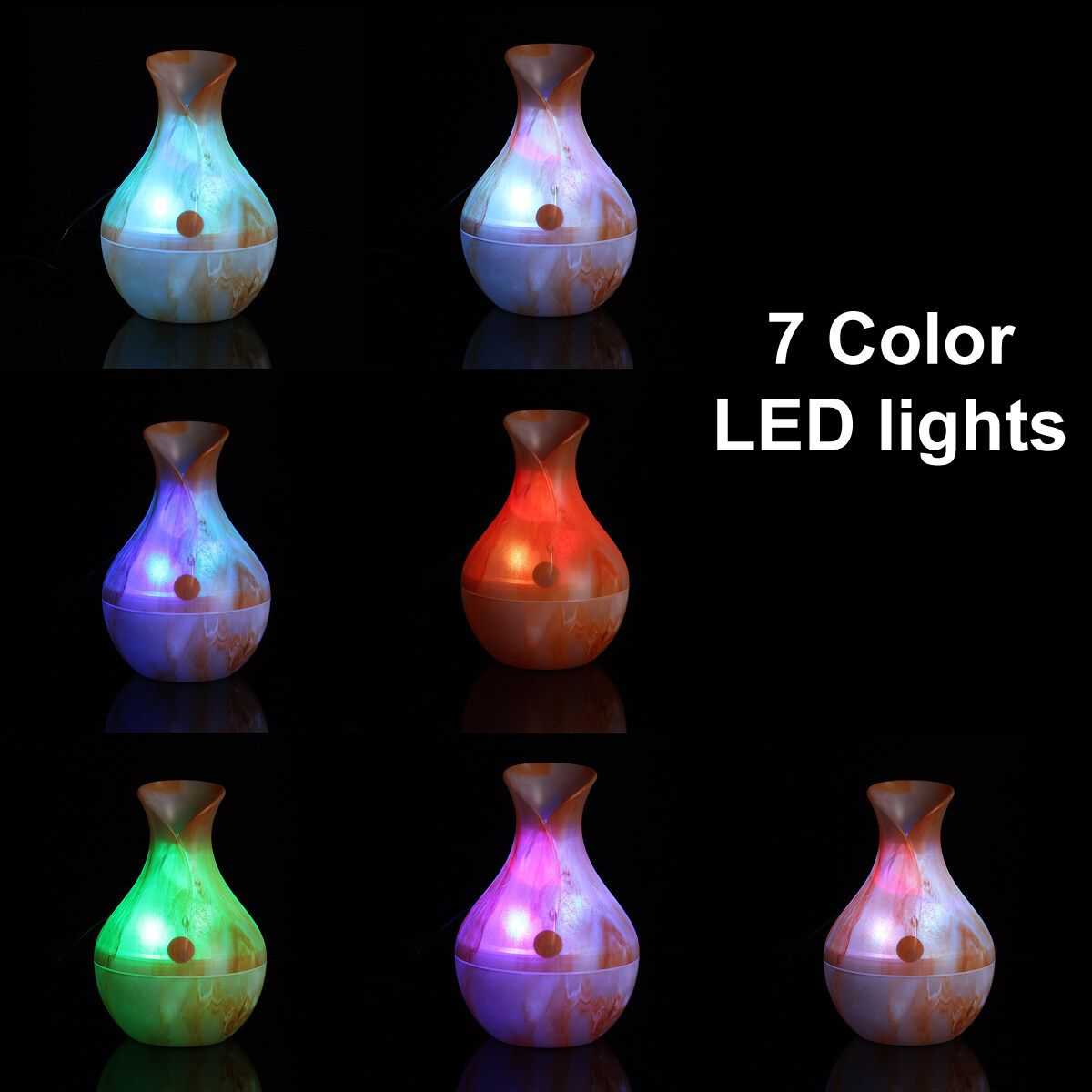 * LED Lights: This portable usb ultrasonic aroma diffuser working with 7 Soothing LED lights, the can be cycled through or set it to one fixed , creates a calming and romantic atmosphere.
