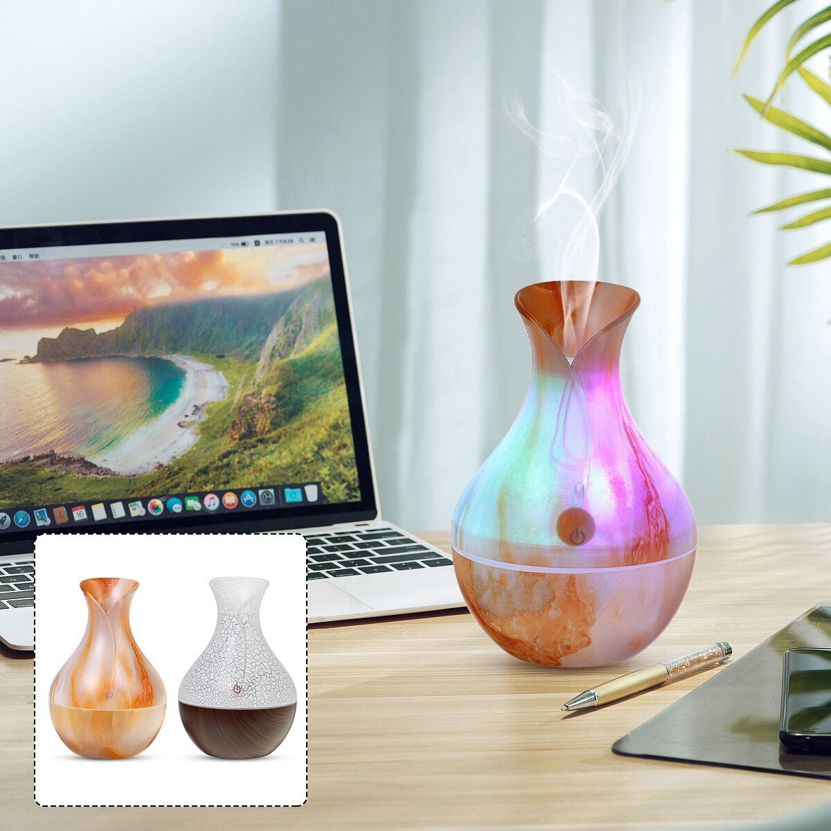 * LED Lights: This portable usb ultrasonic aroma diffuser working with 7 Soothing LED lights, the can be cycled through or set it to one fixed , creates a calming and romantic atmosphere.