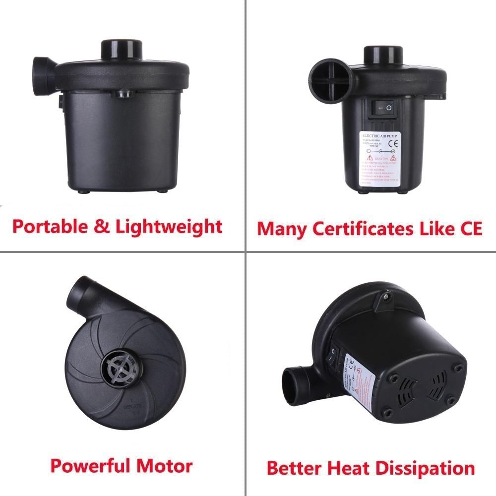 [Widely used] Equipped with car power adapter and household power adapter, which can effectively prepare you for outdoor and indoor use. In addition to inflatable mattresses, you can also pump inflatable beds, inflatable sleeping bags, rafts, and inflatable floating islands. , Inflatable beds, swimming pool toys, floating picnic tables, etc.
