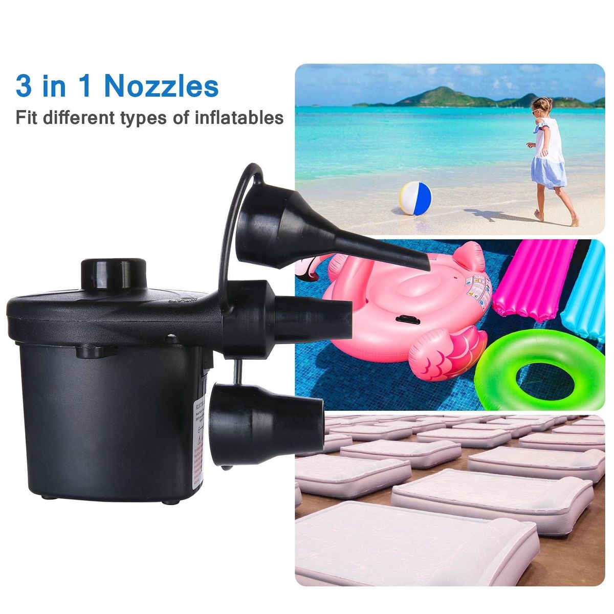 Buy Electric Air Pump Quick Fill Inflator with 3 in 1 Nozzles Portable Deflator Pump for Inflatables Outdoor Camping in Nigeria