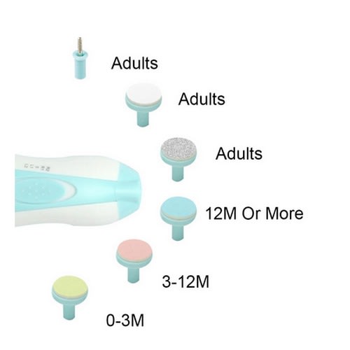 Baby Electric Nail Clipper Protect your growing baby from scratching their own baby soft skin by softly trimming their nails with a safe baby nail file. Safe, Easy to Use and Versatile Each battery-powered nail file kit comes with six different sanding/buffing pads; three for children and three for adults. Our multipurpose nail kit helps sand, clip and polish fingernails and toenails in seconds using safe, effective sand paper that's soft on cuticles and nail beds. Single Hand OperationLightweight and compact, this nail trimmer operates using two AA batteries and can be used with a single hand thanks to its one-button operation. Simply attach your chosen nail file, turn it on, and use the LED front light to softly grind away excess nail length. And thanks to the whisper-quiet motor, you never have to worry about loud noises waking sleeping babies. Product Details: - One-Button Activation- Multiple Speeds and Rotation Patterns - Soft LED Front Light - Whisper Quiet Motor - Compact, Lightweight Design - Safe on Baby's Finger and Toe Nails 4 working modes:R2----Rotating in counterclockwise with high speedR1----Rotating in counterclockwise with low speedL1----Rotating in clockwise with low speedL2----SRotating in clockwise with high speedThe "0" means Off modePacking Included:- Main Machine- Filing Tools for Adults- Cushioned Grinding Heads for BabiesNOTICE:Battery Operated (Two AA Batteries)The item don & rsquo;t including AA batteries ,need extra purchasePlease take off the AA batteries when not use.