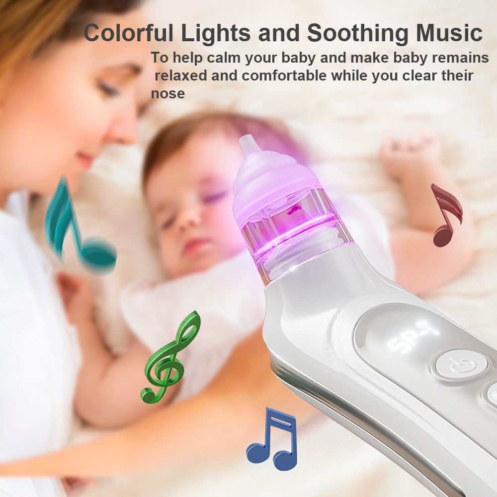 【Colorful Lights and Soothing Music】Our electric baby nose sucker has built-in colorful lights and soothing music to help calm your baby during use. This feature ensures that your baby remains relaxed and comfortable while you clear their nose.