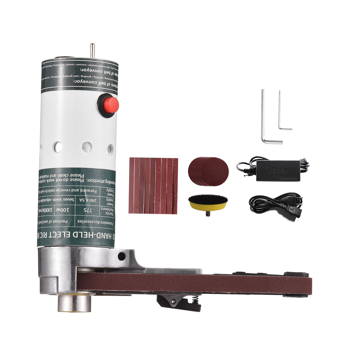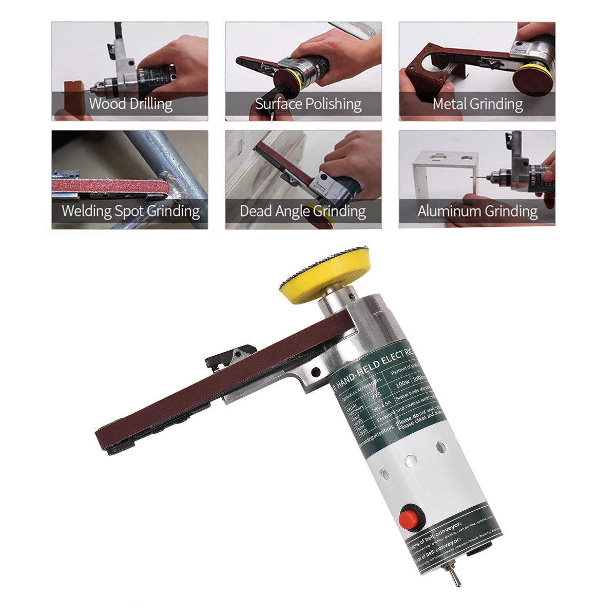 Multifunctional handheld electric belt sander for grinding, polishing, and hole drilling on metal, wood, stone, etc.