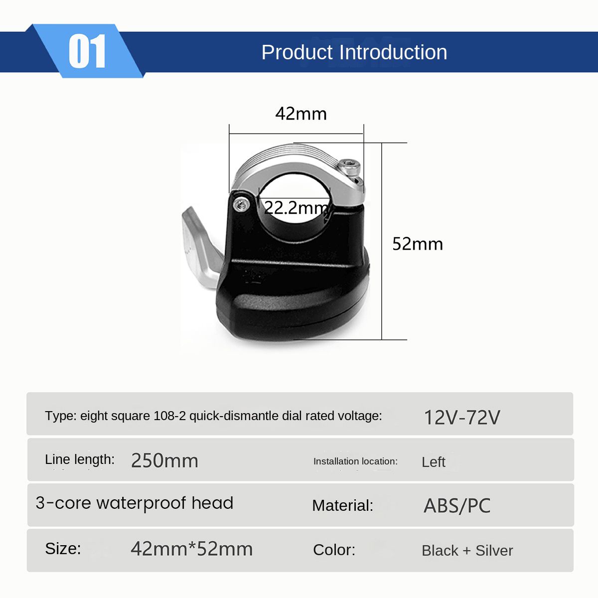 This e-bike left hand 108-2 Thumb Throttle Accelerator Speed Control Fits for 22.5mm Handlebars