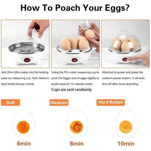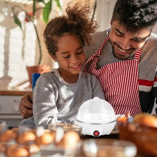 [Large capacity egg cooker]: The egg cooker tray can hold 7 eggs. It can boil soft, medium or hard eggs, just change the amount of water, and let the egg cooker do the rest. It can make breakfast for 2-3 people.