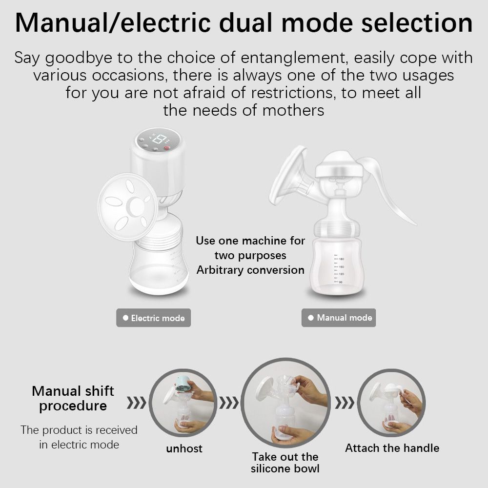 【Dual Mode】With the option of manual and electric modes, this breast pump can be tailored to your specific needs. Whether you prefer the control of a manual pump or the convenience of an electric one, this pump has got you covered.